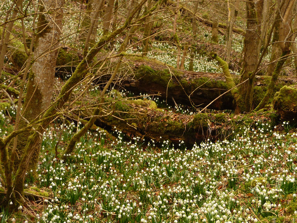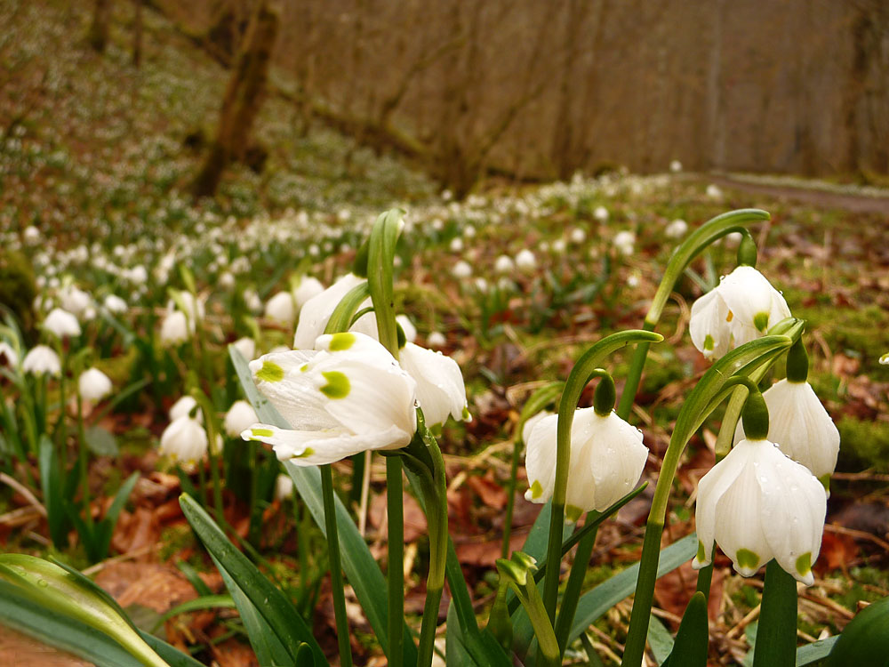 Frühlingsknotenblume oder großes Schneeglöckchen: So werden die Märzenbecher auch genannt. Obwohl sie auf der Schwäbischen Alb hier und da noch in größeren Mengen vorkommen, gelten sie als gefährdet und werden besonders geschützt.