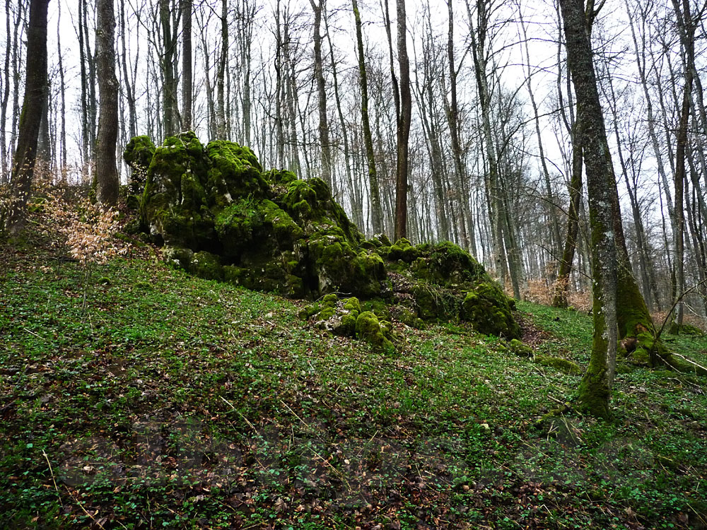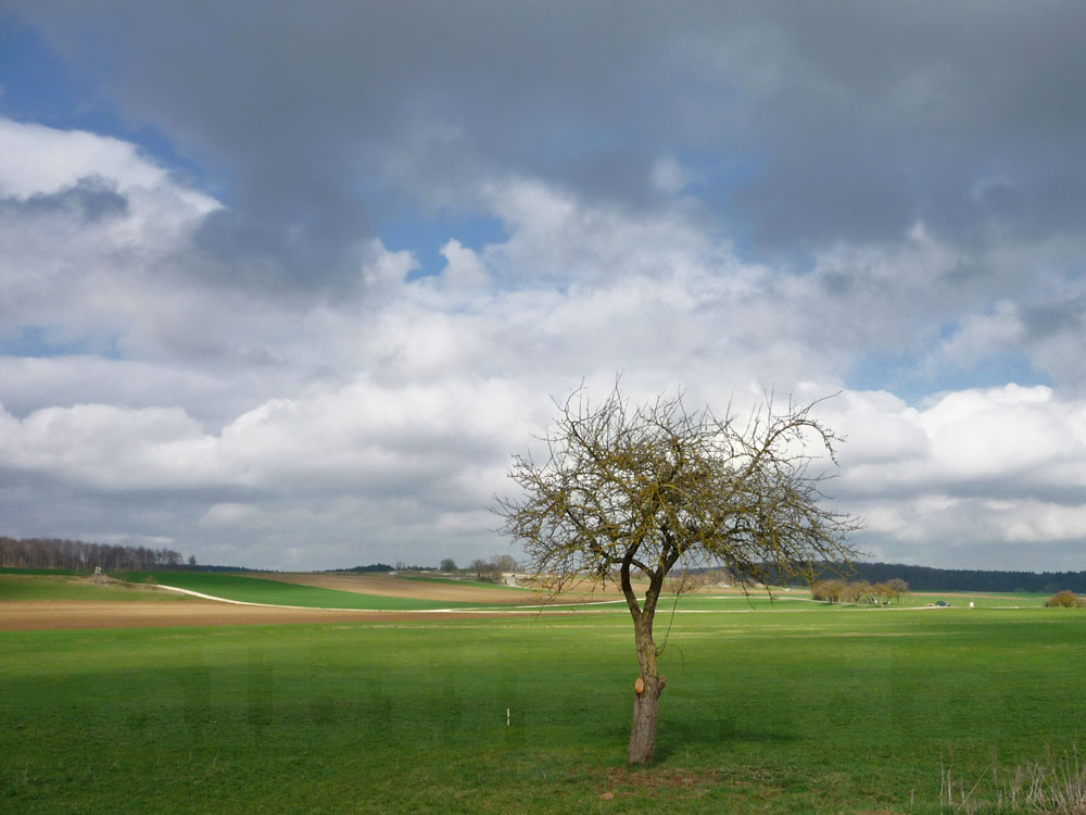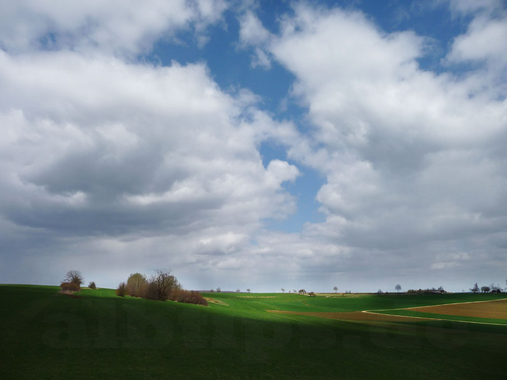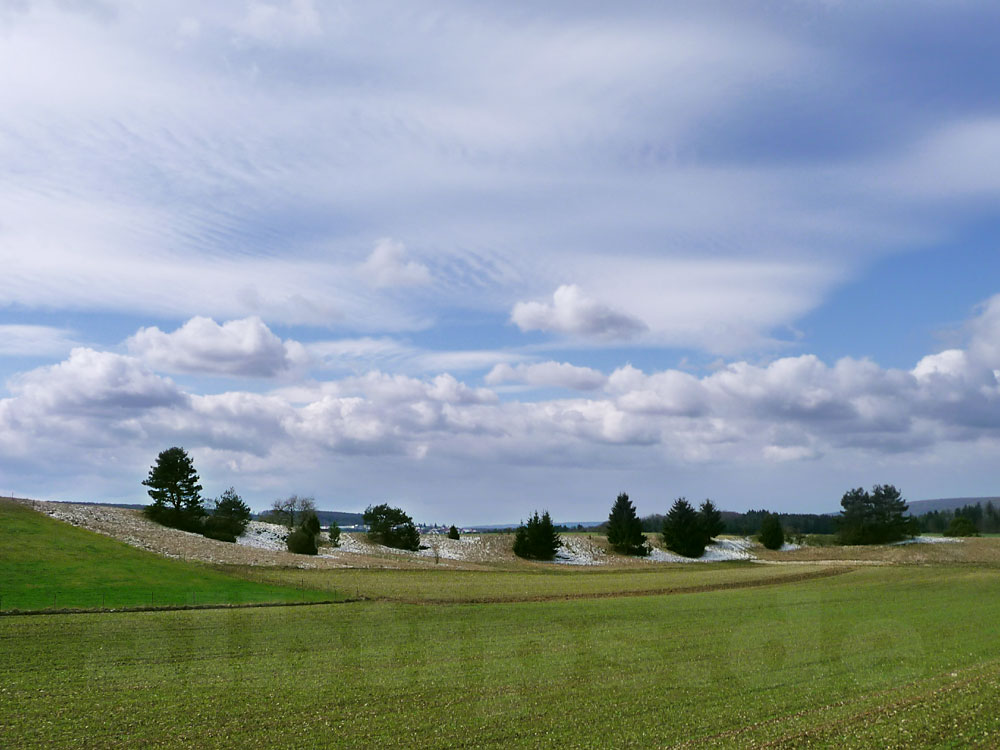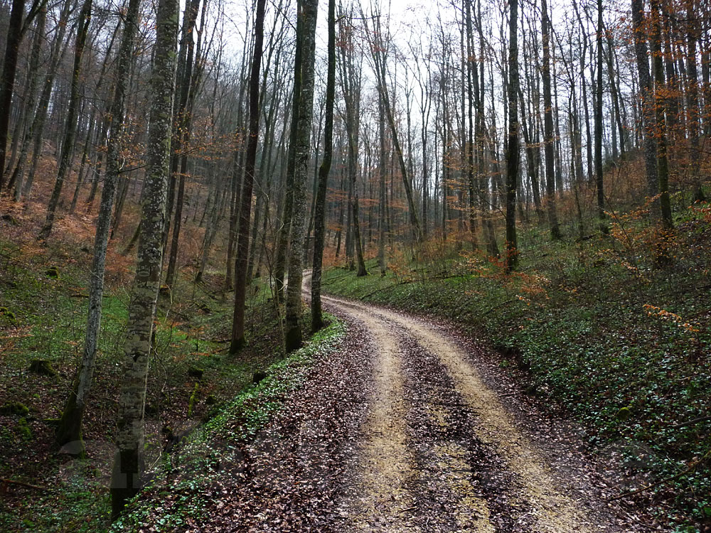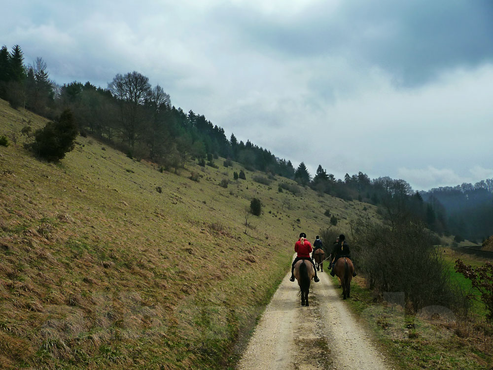 Beim Satteln grieselt noch der Schnee vom Himmel, aber schon beim Losreiten zeigt sich die milchige Scheibe kurz hinter den Wolken. Sanft hinab windet sich das Tal entlang der Wacholderheidehänge, ein anderes führt zwischen vereinzelten Sonnenstrahlen durch den lichten Buchenwald hinauf. Grüne Halme dringen durch die braune Erde und und lassen die hügelige Landschaft frühlingshaft leuchten.