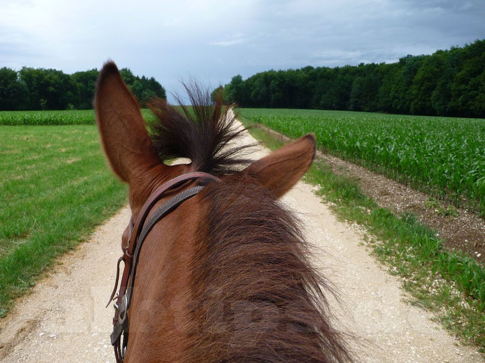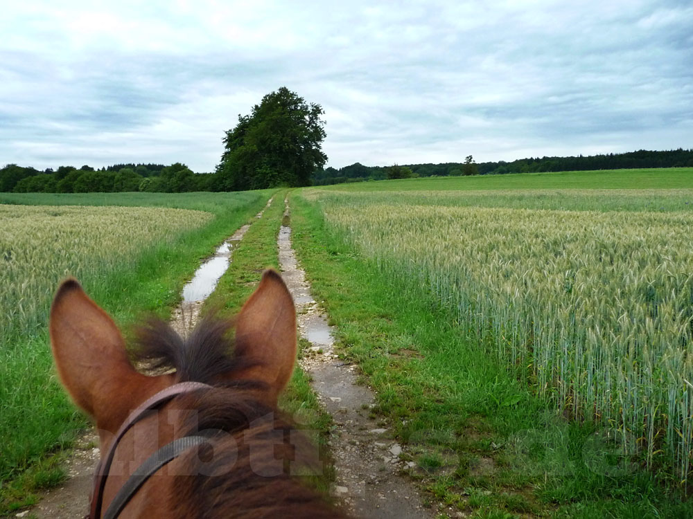 Nach einer langen Gewitternacht und kräftigen Regenschauern am Vormittag, war mit solch einem schönen, trockenen Ausritt fast nicht zu rechnen – doch er war wunderbar. Im Wald war es aber sehr viel angenehmer als auf den Freiflächen, wo die Bremsen zuhauf über uns herfallen wollten.