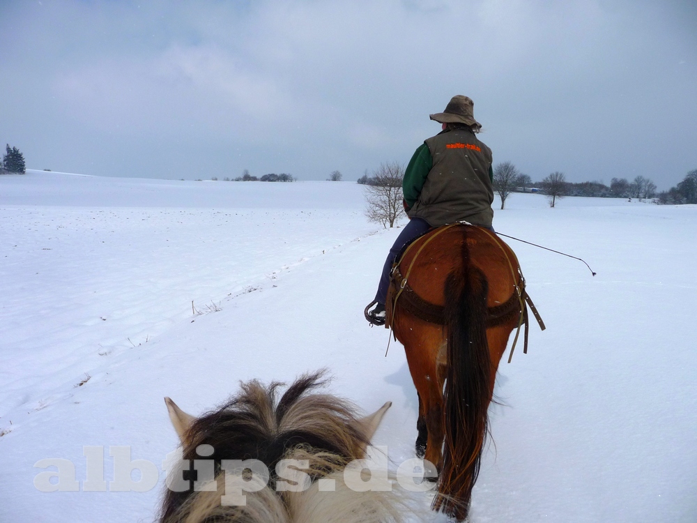 Kalt begann der Morgen, der Wind trieb die Schneeschauer über uns hinweg. Pferd und Muli trugen uns auch diesmal sicher durch die Landschaft. Nach und nach gewann die Sonne die Oberhand und strahlte vom blauen Himmel.