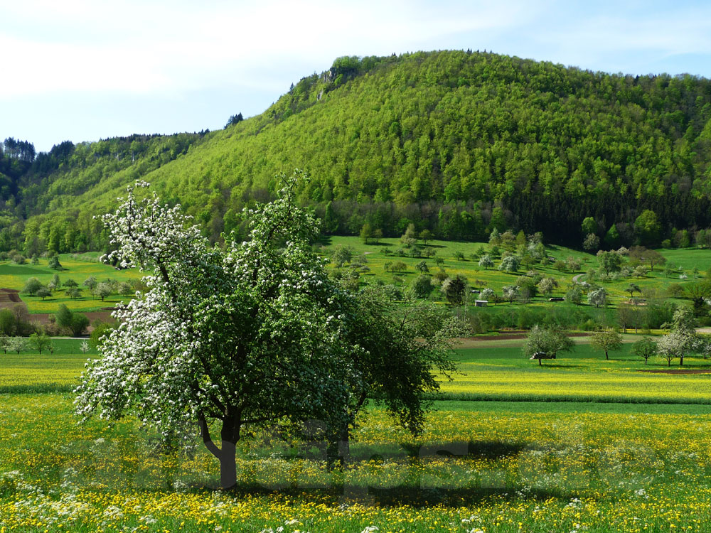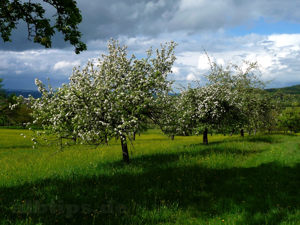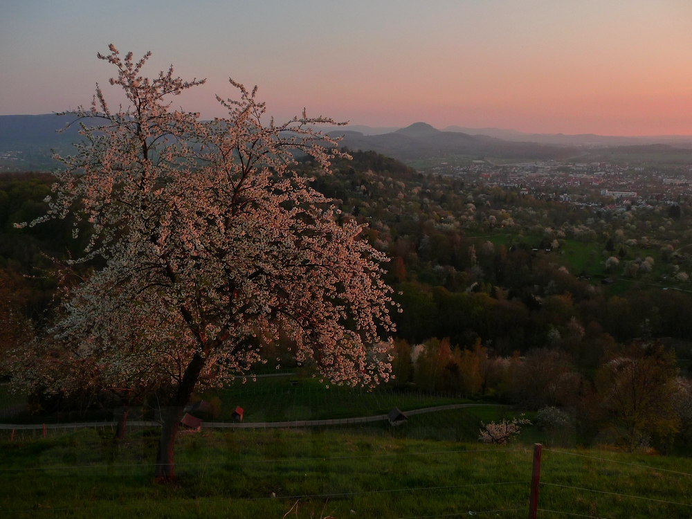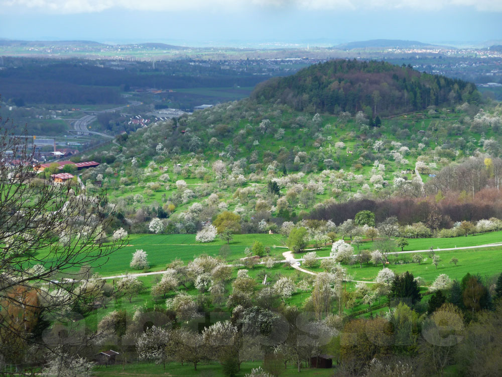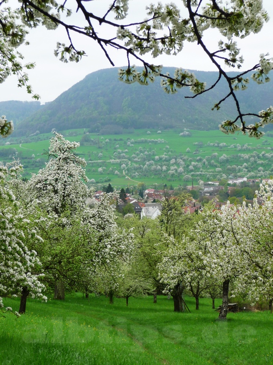 Besonders schön ist die Obstbaumblüte am Albtrauf und im Albvorland. Man spricht daher vom Schwäbischen Hanami. Nicht nur das Betrachten der Blüten gehört dazu, sondern auch die Feste und das Verkosten von Obstbränden.