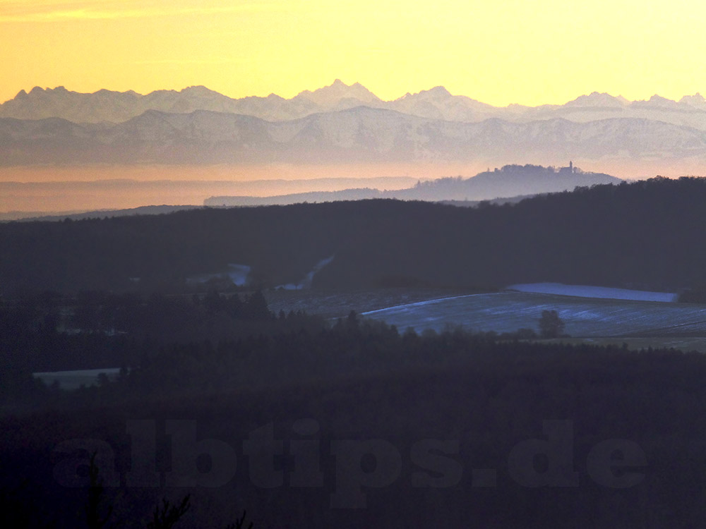 Nicht nur die Alpenkette ist beeindruckend, sondern auch der Blick über die Alb zu