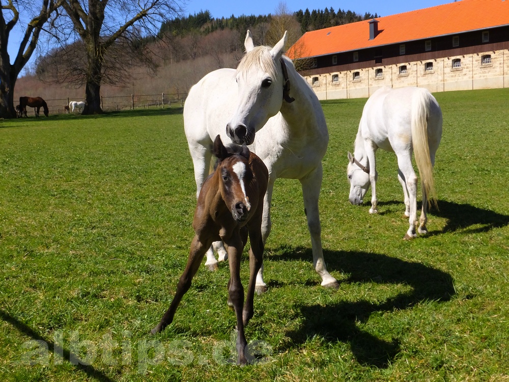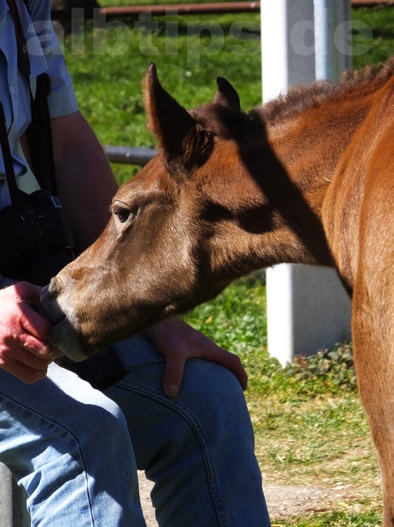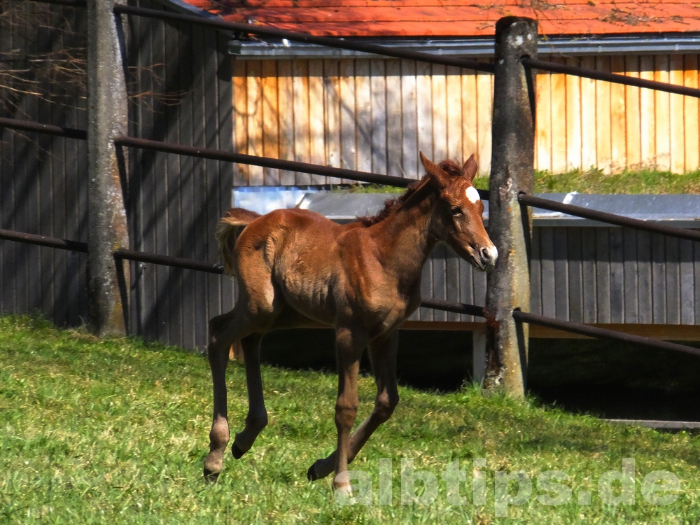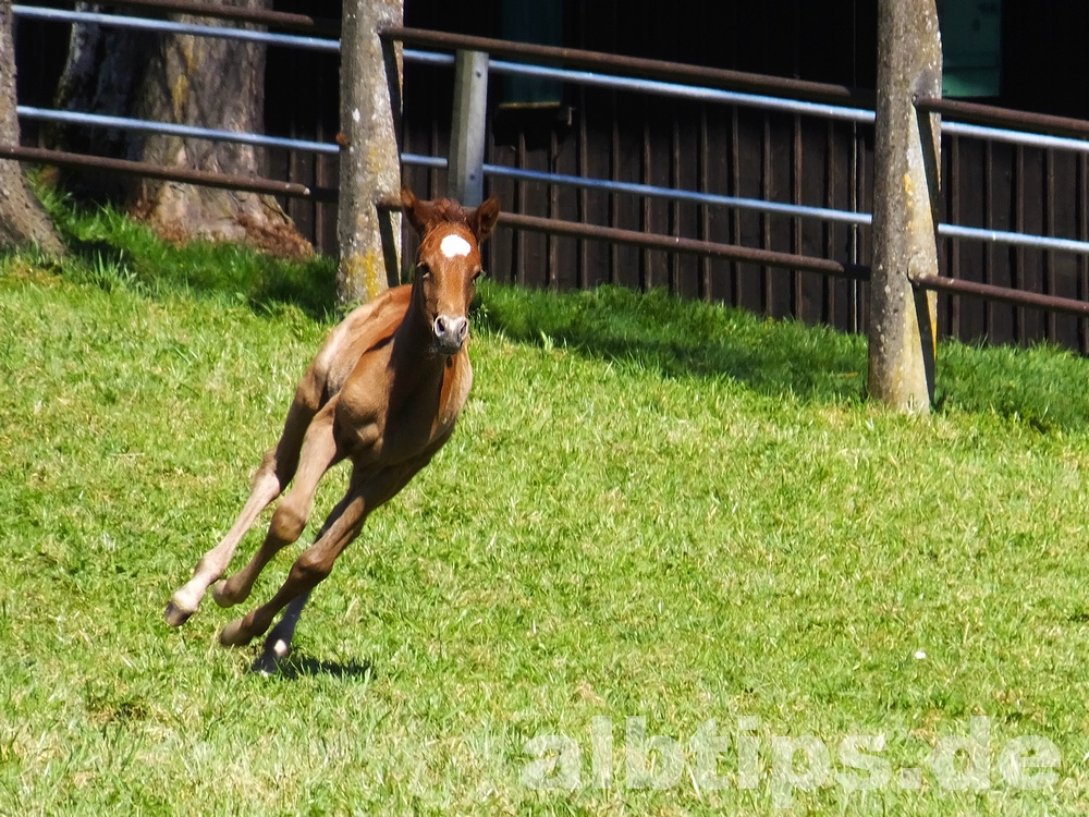 Im Frühling lohnt sich ein Ausflug zum Gestüt Marbach besonders, denn dann springen die Fohlen über die Weiden. Die ganz kleinen sind noch nicht ganz so aktiv und entfernen sich kaum von ihren Müttern.