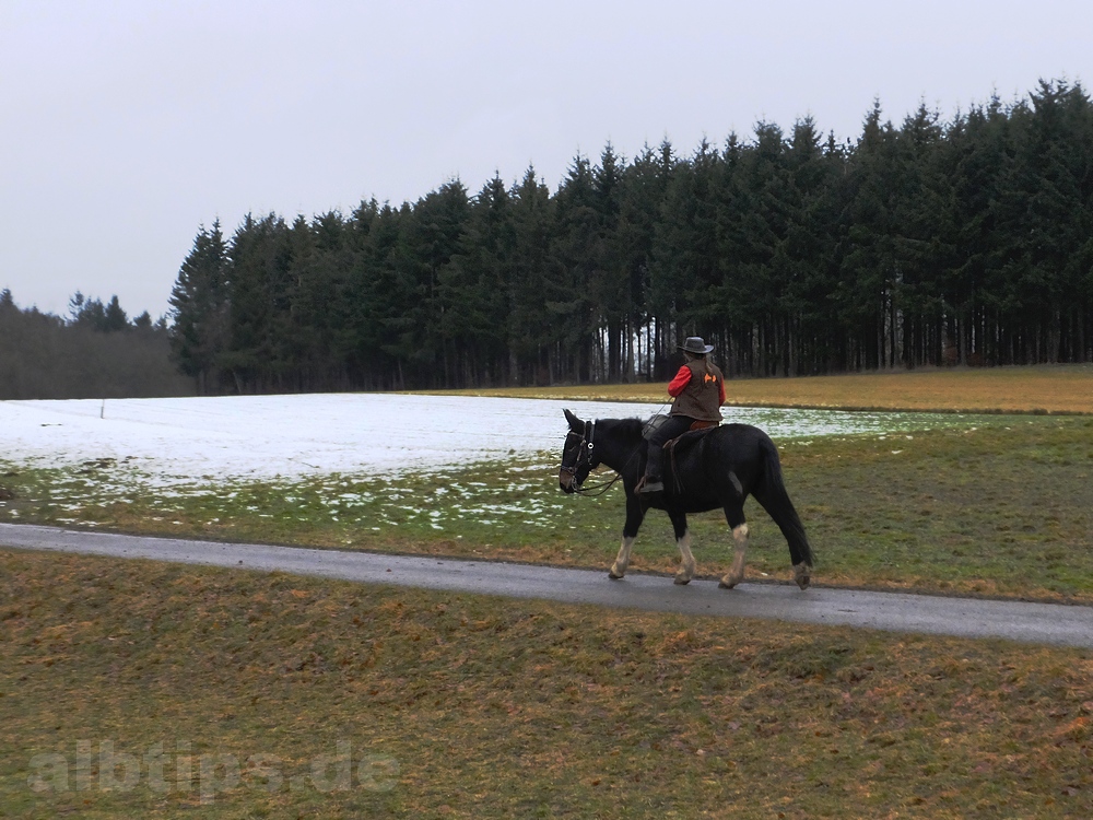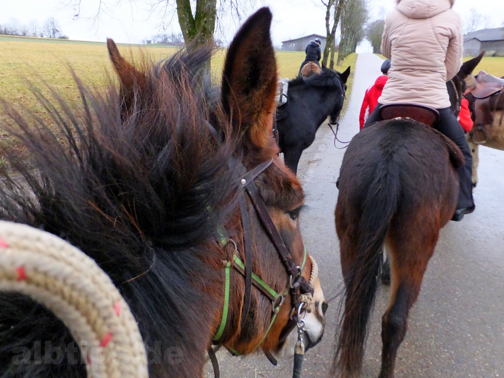 Und tatsächlich: Es wurde ein recht angenehmer Sonntagsritt! Die Temperaturen blieben im Plusbereich, beim Putzen der Maultiere wurde uns zum Glück etwas wärmer und der Wind hielt sich auch in Grenzen.