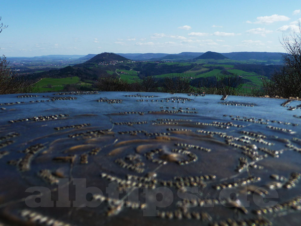Nach dem kurzen Aufstieg wird man mit einer fast 360°-Aussicht belohnt. Nicht nur die Sicht zum Albtrauf ist wunderschön, sondern auch der ins Albvorland bis hinunter zum Stuttgarter Fernsehturm.