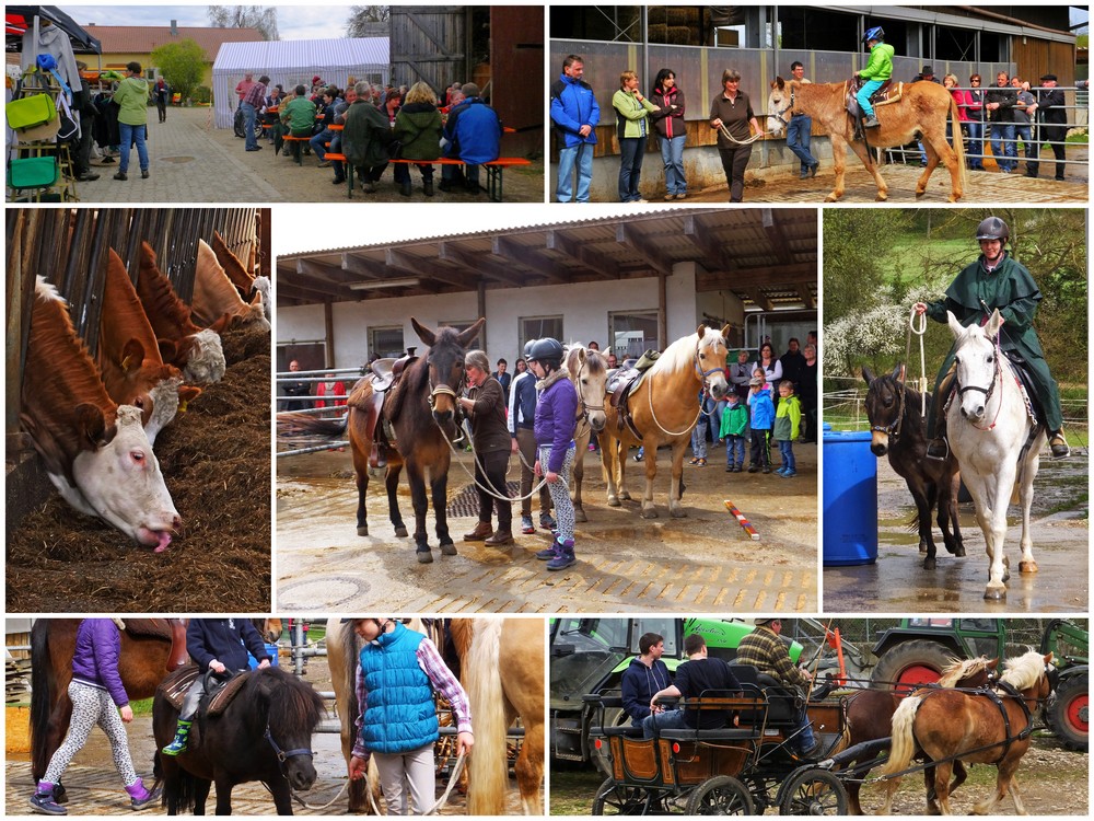 Heute konnte man auf dem Albhof Reuter bei Mehrstetten an einer Hofführung teilnehmen, sich im Bogenschießen üben oder bei den Reit- und Mulivorführungen zuschauen. Vom Vortag waren noch Wanderreiter und Kutschfahrer mit ihren Pferden da. Alles in allem ein schönes, gut besuchtes Hoffest!