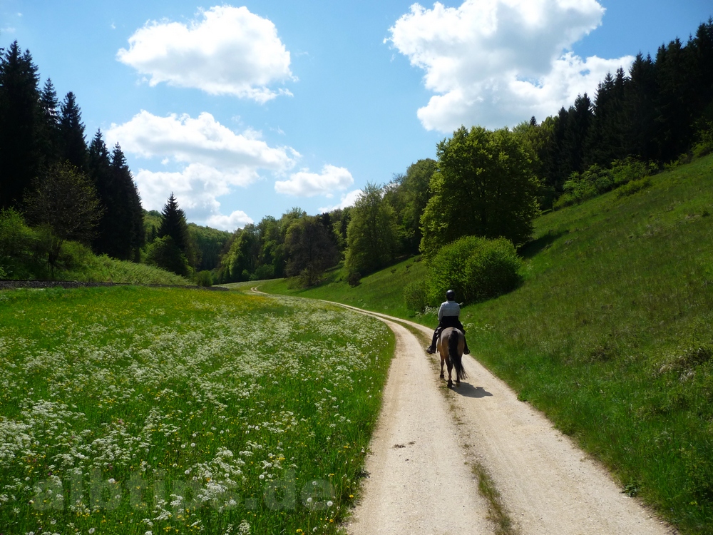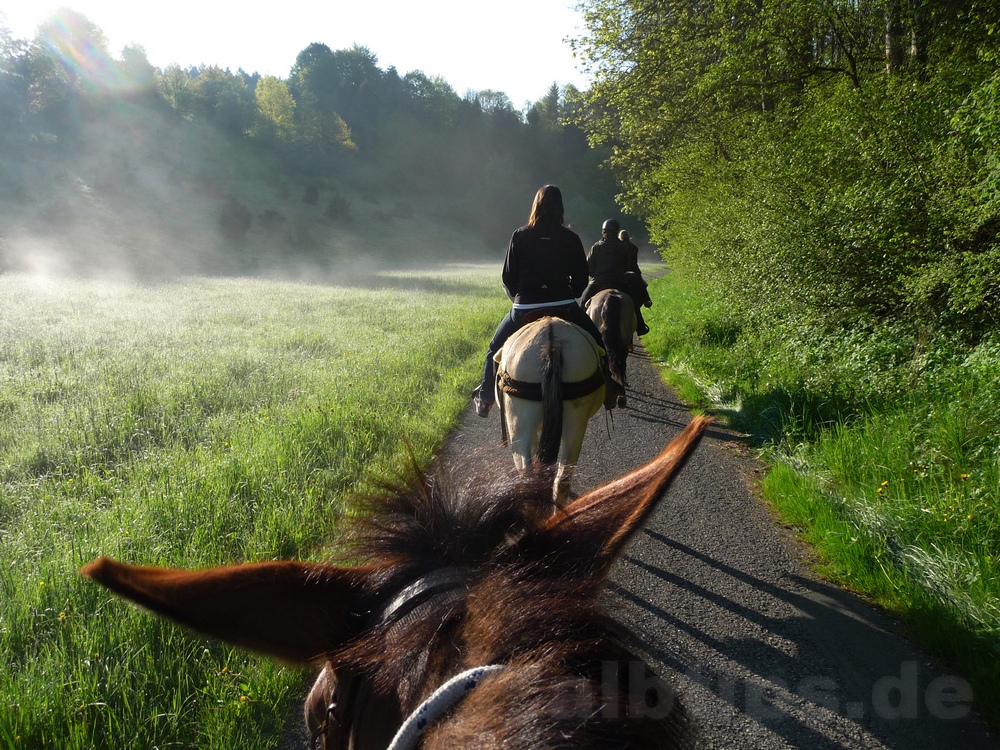 6 Uhr treffen, 7 Uhr losreiten, die wunderbare frühmorgendliche Stimmung genießen, im Licht der tiefstehenden Sonne durch Täler und über die Albhochfläche bummeln. Und dann: das leckere Spätaufsteherfrühstück im Dächinger Backhaus. Ein Tag wie 2 Wochen Urlaub.