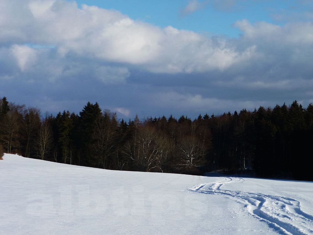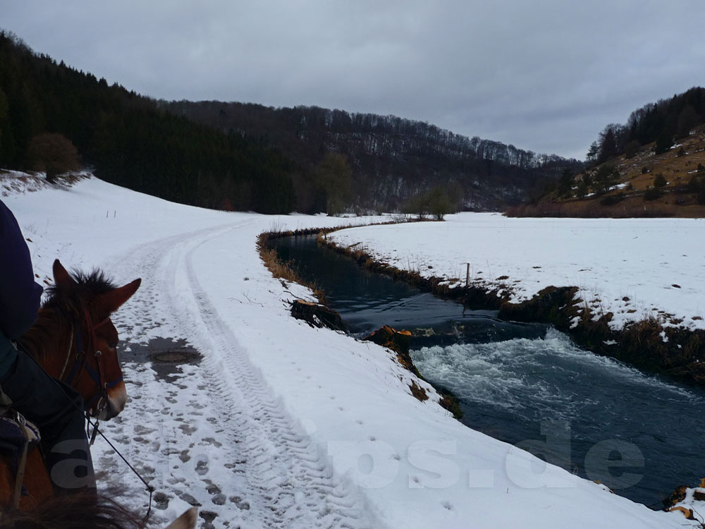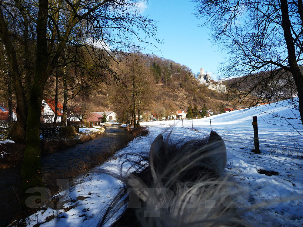 Heute war wettermäßig alles drin, was der Winter zu bieten hat: Eine zauberhafte Winterlandschaft, Schneeschauer, bedeckter Himmel und blauer Himmel, wärmende Sonne und kalter Wind. Ideal für einen Tagesausflug mit Zwei- und Vierbeinern durch wildromantische Täler, vorbei an albtypischen Wacholderheiden und über die Weiten der Albhochfläche.