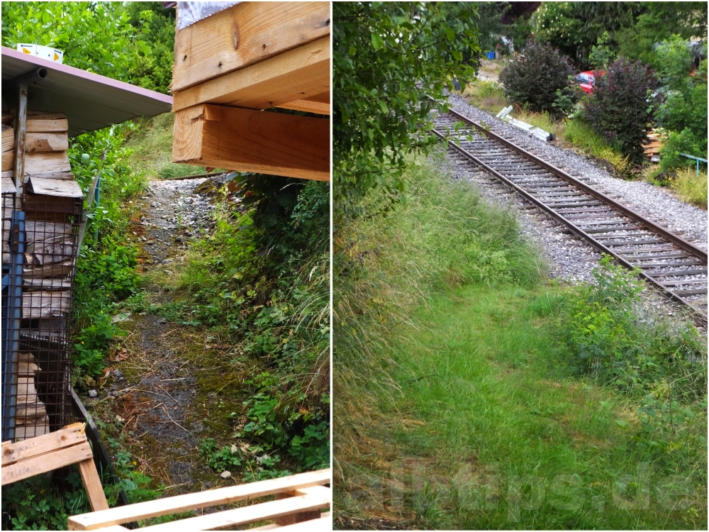 Wer den Schlenker machen möchte, zweigt also wie beschrieben scharf rechts auf einen schmalen Pfad ab, der zwischendurch zwar begehbar aber leicht zugewuchert ist. Im Juni 2011 wurden hier außerdem von zwei unabhängigen Seiten Zecken gemeldet. Auf einer kleinen Lichtung wendet man sich nach links oben, wandert am CVJM-Heim sowie an einem verlassenen Fußballplatz vorbei und den Hang des Naturschutzgebiets Spielberg hinauf. Der Pfad wird sehr steil, noch ein paar Treppenstufen und man erreicht den Schotterweg.