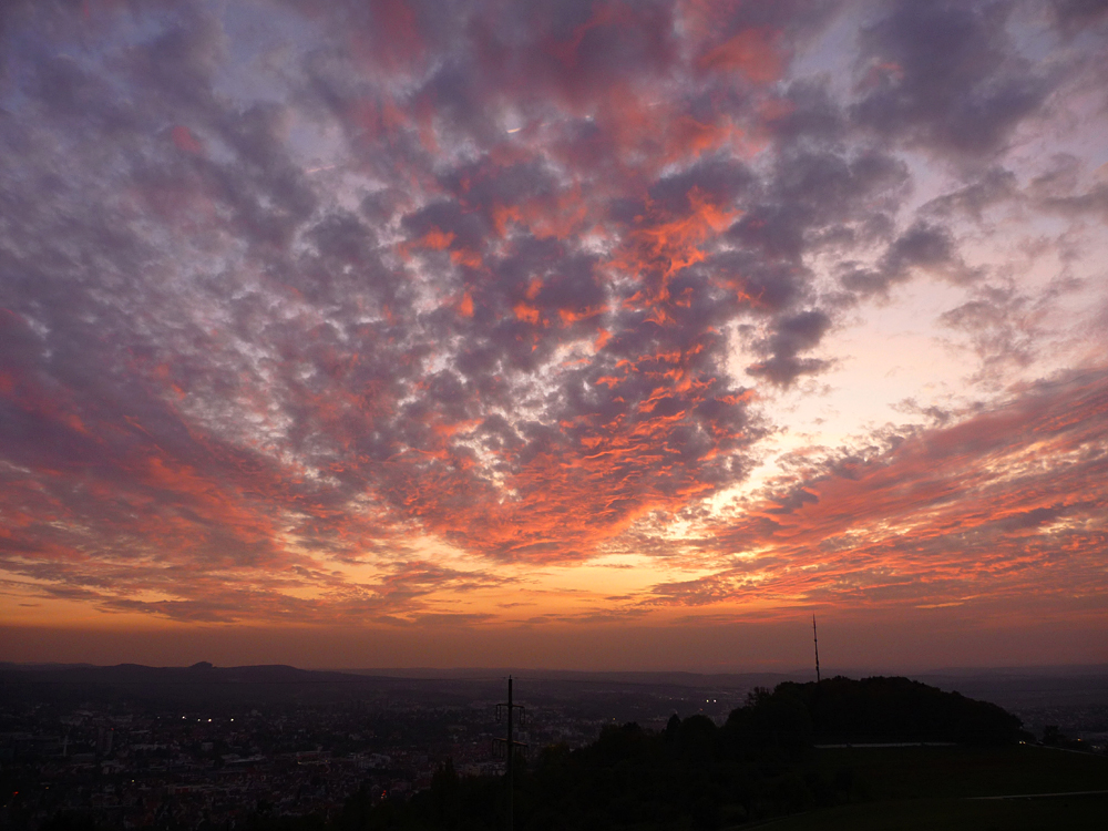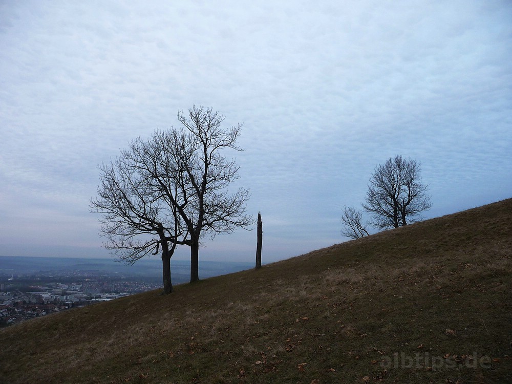 Von dort wählt man den Fußweg parallel zum Sträßchen in Richtung Achalm Restaurant, biegt aber nach wenigen Metern links auf den Wiesenweg ab, der steil auf den Gipfel zuhält.