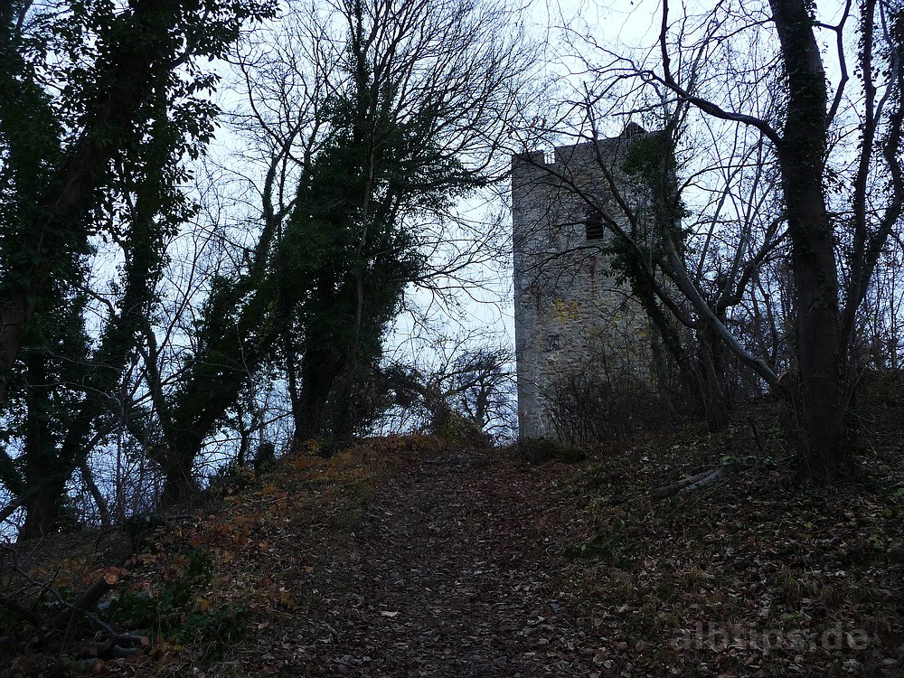 Oben vom Aussichtsturm (721 m ü. NN) hat man rundherum freie Sicht auf die Umgebung: Alle Sehenswürdigkeiten der Mittleren Schwäbischen Alb sind (teils nur mit dem Fernglas) zu sehen – den Albtrauf von der Teck und dem Hohenneuffen bis hin zum Roßberg, die Pfullinger Onderhos, das Schloss Lichtenstein und den Mädlesfels. Eine Grillstelle ist vorhanden.