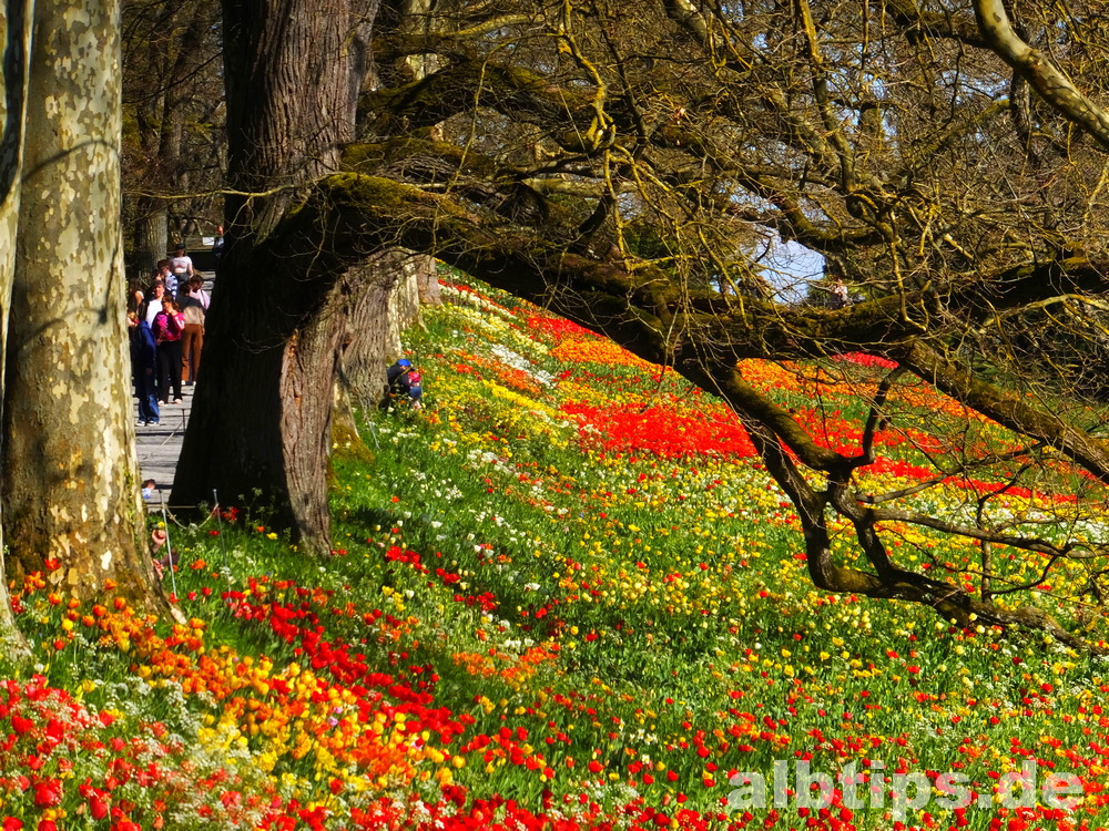 Das derzeitige Highlight ist die Frühlingsallee mit vermutlich Millionen Tulpen. Es schließen sich ein Bauernhof und ein Kinderland an, wo man auch die beeindruckenden Blumentiere findet.