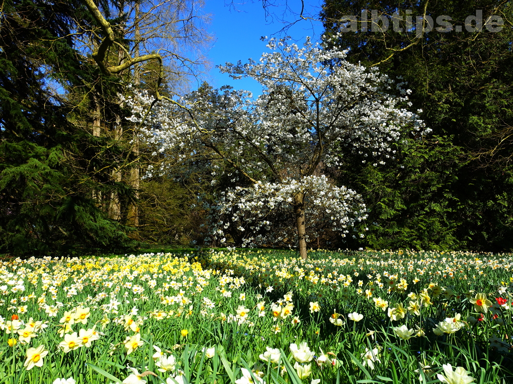 Wer nicht schon früh zu den ersten gehört, kann schon vom Parkplatz ein Stückchen zum Eingang laufen. Dort geht es über eine Brücke auf die Insel Mainau. Dort kann man natürlich überall hingehen, in jeder beliebigen Runde. Mit gut 3 km sollte man mindestens rechnen, wenn man einmal um die Insel gehen möchte. Gerade auf der Südseite bieten sich aber noch weitere Schleifen an, um alles sehen zu können.