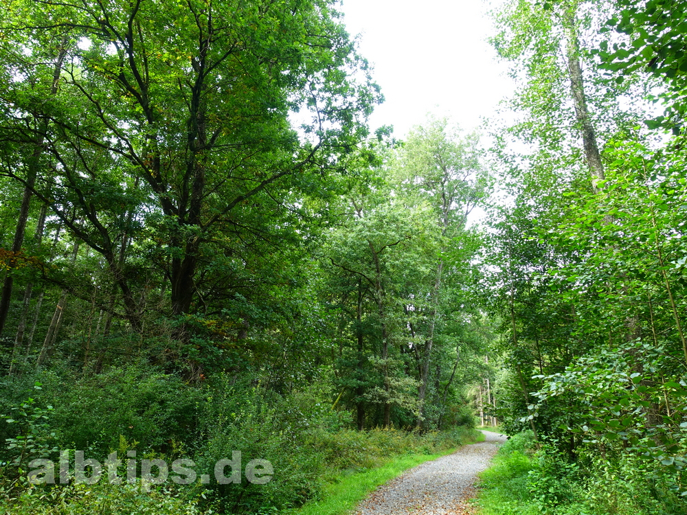 Es geht vorbei an Teichen und am plätschernden Bächlein durch das Bachtal stetig leicht bergauf. Nach knapp 2 km biegt man links auf einen holprigen, ev. matschigen Waldweg, auf dem viele Äste liegen, ab. Kurz darauf geht es rechts hinauf und bei einem Querweg links.