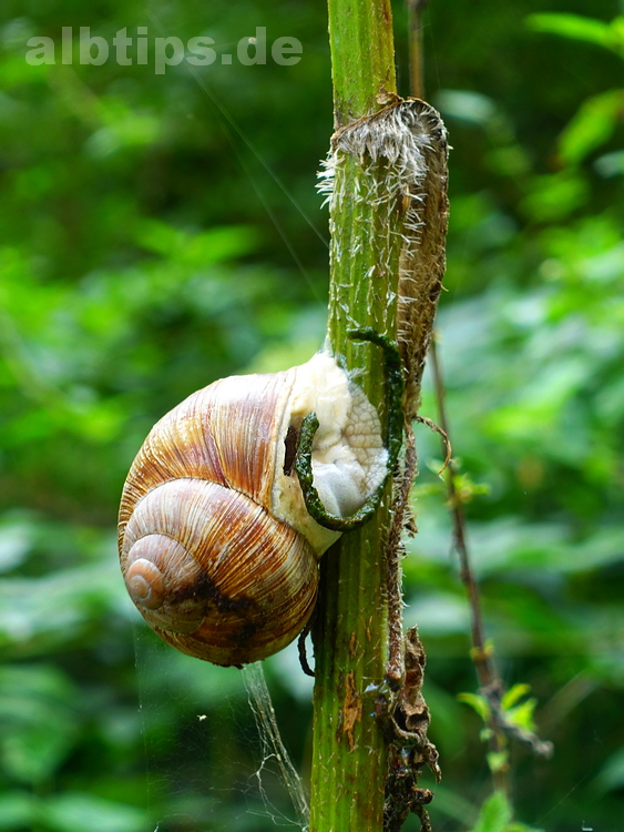 Man kommt so zur Kirche St. Blasius (6), bei deren Sockel man Stubensandstein verbaut hat. In der Kirche selbst gibt es Stufen, in denen man Fossilien erkennen kann.