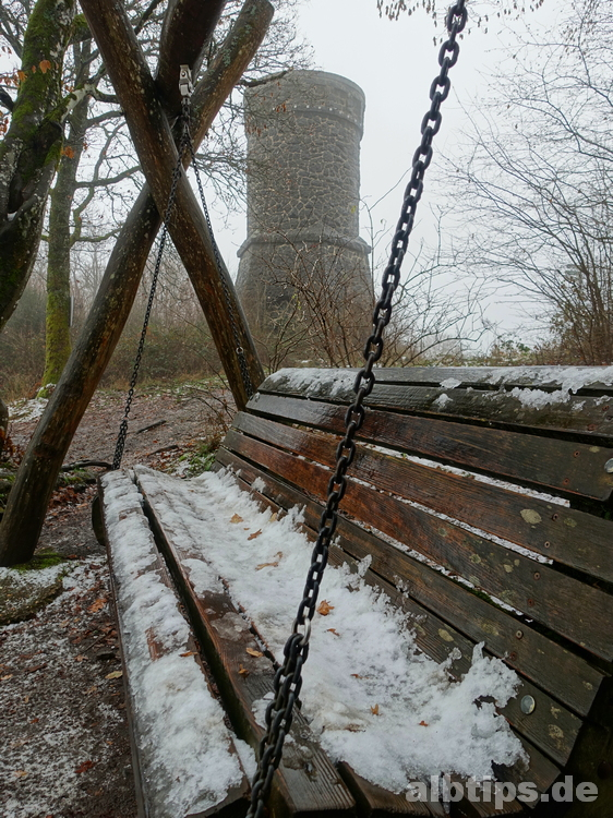 Neben dem Turm gibt es im Wald einen weiteren Aussichtspunkt mit Blick auf das Gemündener Maar, bei schönem Wetter kann man sich auf die schöne Schaukel setzen.
