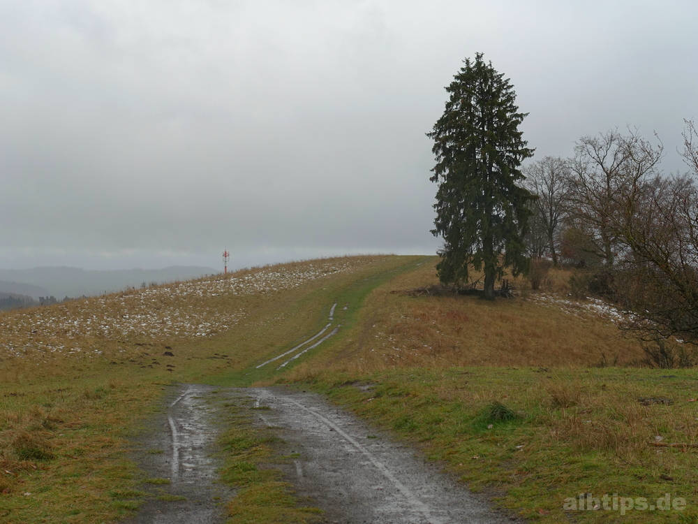 Man geht zurück zum Turm und nimmt den Weg links, der fast parallel zum Herweg leicht bergab an einem FFH-Gebiet entlang führt, weiterhin mit schönen Aussichten über die Eifel.