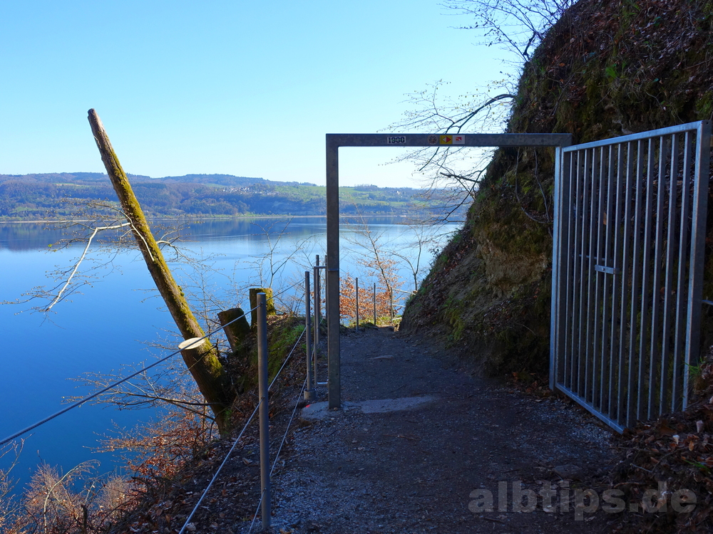 Nun folgt man dem Weg am Waldrand und später etwas unterhalb des Waldrands parallel zum Herweg wieder zurück. Man erblickt dabei in der Ferne immer wieder die Ruine Hohenurach.